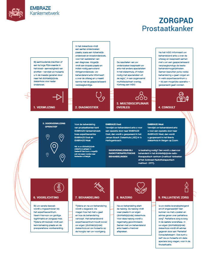 ZRTI zet samen met patiënt stap in registratie van behandeluitkomsten dankzij inzet van Noona ZRTI eerste Nederlandse zorgorganisatie met Noona-app ARM-studie: betere resultaten voor borstkankerpatiënten Chirurgen Ernest Luiten, Paul Gobardhan en chirurg in opleiding Maarten Beek hebben met hun ARM (Axillary Reversed Mapping)-studie binnen Amphia geschiedenis geschreven. Een patiëntvriendelijk overzicht voor de behandeling van Prostaatkanker Zorgpad Prostaatkanker Verbeterd zorgpad sarcoom vraagt innovatieve financiering Innovatieve financiering voor kankerzorg Snel uitslag van prostaatonderzoek Binnen een dag weten mannen jonger dan 75 jaar of ze een afwijking hebben aan de prostaat. Erasmus MC Kanker Instituut: alles onder één dak "Dat alles onder één dak zit, versnelt het vinden van de beste therapie voor onze patiënten." Nieuwe antikankerbehandelingen bij nierkanker: hoe optimaliseren we indicatiestelling en uitkomst? Highlights 5 jaar EMBRAZE Op deze pagina ‘Highlights 5 jaar EMBRAZE’ vindt u de linkjes naar alle highlights-berichten. Partners van het EMBRAZE Kankernetwerk verbeteren samen de zorg voor mensen met nierkanker nieuw, belangrijk initiatief om de zorg voor patiënten met uitgezaaide nierkanker goed te regelen. ETZ biedt topzorg aan patiënt met hoofd-halskanker EMBRAZE-partner ETZ biedt volgens het Zorgregister van de Stichting Topklinische Ziekenhuizen (STZ) topklinische zorg aan patiënten met tumoren in het hoofd-halsgebied. Dicht bij huis herstellen van een stamceltransplantatie Eerste Zeeuwse patiënt die in Zeeland mag herstellen na een stamceltransplantatie Het EMBRAZE Kankernetwerk bestaat dit jaar 5 jaar! Jubileumuitgave van het EMBRAZE Kankernetwerk 1.5891015.19